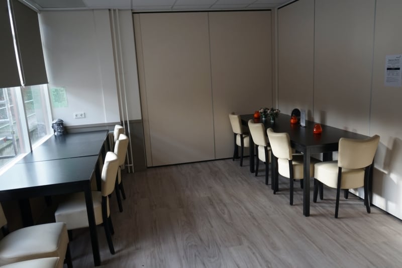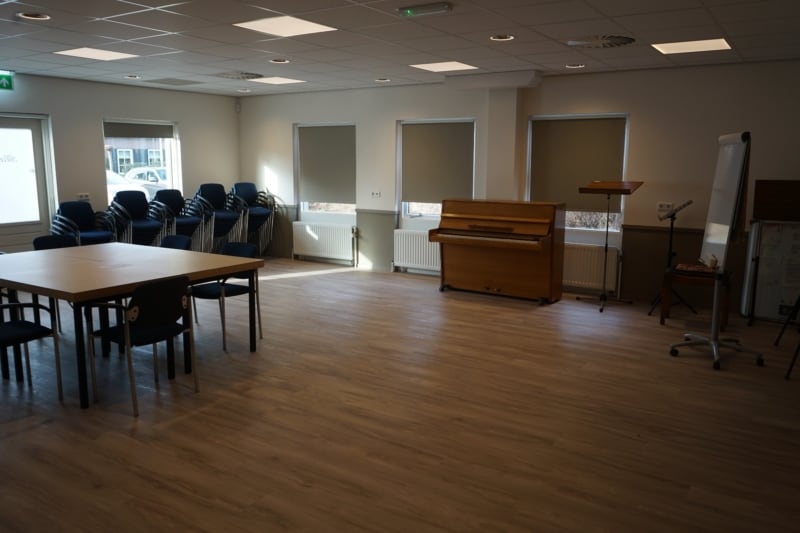Alle zaalopstellingen zijn mogelijk: U-vorm, blokvorm, theateropstelling, klaslokaal, carré of zonder stoelen of tafels.